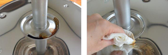 プレートを外したところにも汚れが付いている。取り外しはできないが、濡らしたティッシュで拭き取ったらキレイになった
