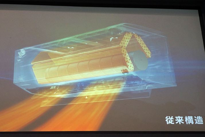 「霧ヶ峰 FZシリーズ」の外観はこれまでのエアコンと同じだが、中身が異なる。空気を送り出すファンを“世界初の機構”にするとともに、内部構造を大幅に改良したのだ。このように、エアコン(室内機)の構造が一新されるのは50年ぶりだという。発表会で見てきた、その仕組みをお伝えする。