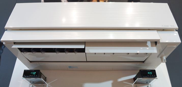 インテリアのような美しい筐体をコンセプトとした「霧ヶ峰 FLシリーズ」も開発されている。詳細はまだ未定だが、「ムーブアイ極」や2つに分かれたフラップは搭載。ただし、「FZシリーズ」のプロペラファンではなく、従来の円筒型のファンの構造となる。