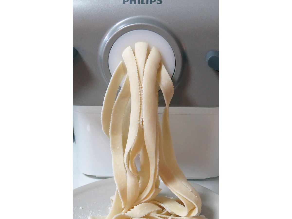 そばやうどん、ラーメン、パスタといった「麺メニュー」は日々の食卓に欠かせない人気メニュー。とはいえ、自宅で麺から作るという方は少ないはず。その理由は“手間がかかる”“うまくできない”というあたりでしょう。筆者もそうでしたが、フィリップス「ヌードルメーカー HR2365」(以下、ヌードルメーカー)を手に入れてからは、“麺は自宅で作るもの”に変わり、ほとんど乾麺を買わなくなりました。なぜならば、手軽なうえに美味しいから。粉と水(水+卵)を入れてスイッチを押せば、勝手にこねて最短5分で生麺がニュ〜ッと出てくる。そして、乾麺にはない独特のモチモチ感。たまりません……。