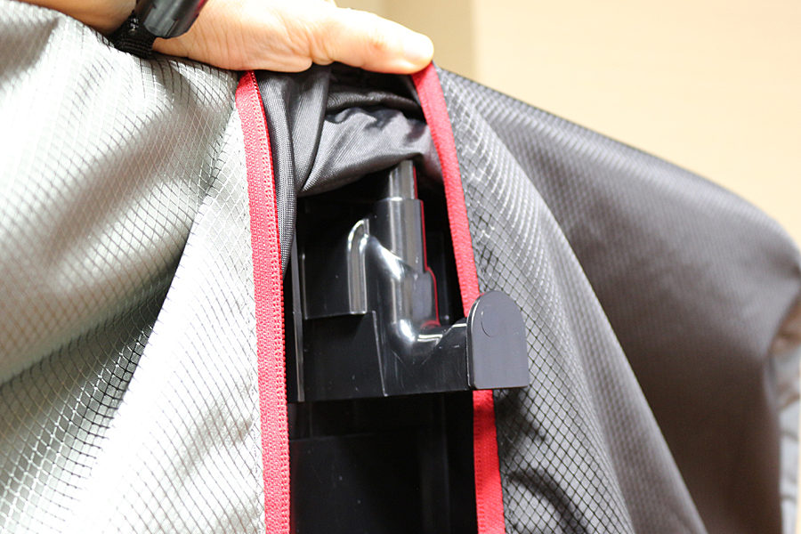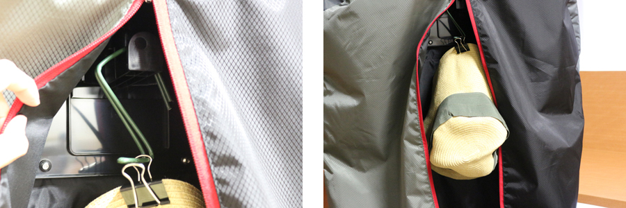 衣類袋内部にはフックが設置されており、ここにハンガーをかけて使用する