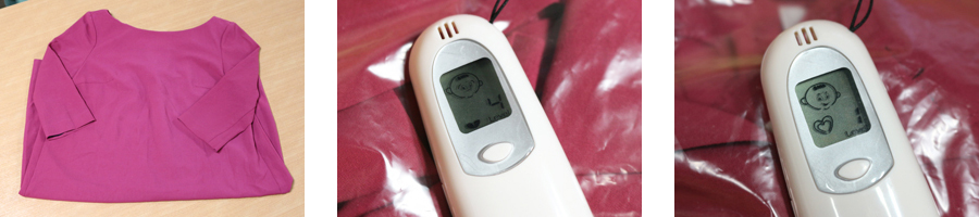 夏の真っ盛りに野外バーベキューをしたときに着ていたワンピース。汗とバーベキューの煙、そして焼肉のたれのようなニオイが染み付いていたが、2時間でまったくニオイが気にならなくなった。ニオイチェッカーの数値は1→0に
