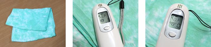 筆者が運動の際に着用しているパレオ。汗をたっぷり吸った後に1週間放置したので「むわ〜」と汗のニオイが漂っていたが、こちらもまるで洗濯後のような無臭状態に。やわらかなレーヨン素材の風合いが変わることもなかった。ニオイチェッカーの数値は1→0に