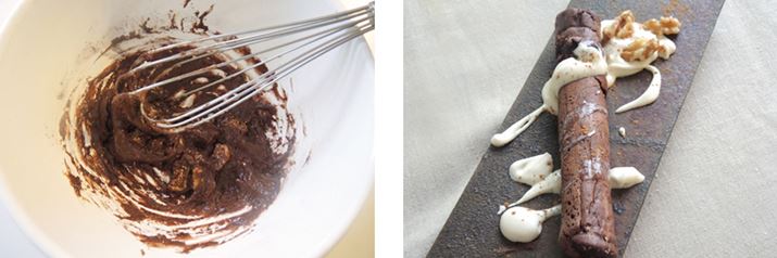 (2)焼き上がりに、生クリームと砂糖を混ぜて泡立てたものやシナモンパウダー、クルミを添えてできあがり。