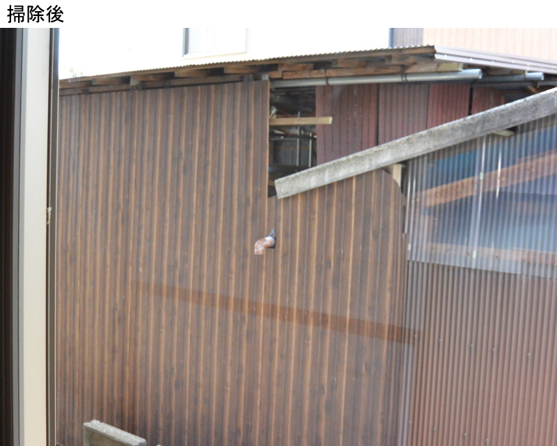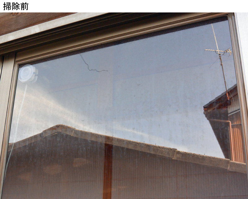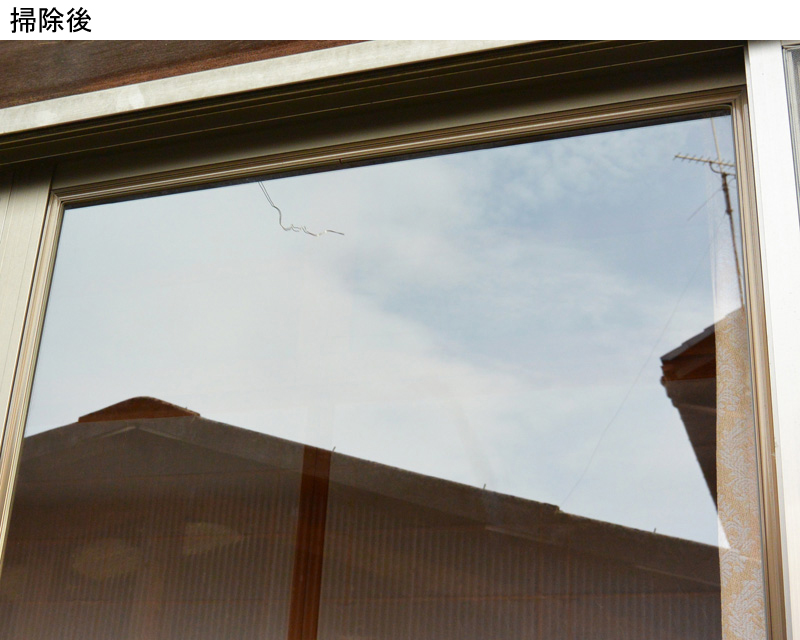 1年以上掃除していなかった窓には、水垢や汚れがびっしり。掃除後の状態を外から撮ってみましたが、くすんでいた窓がすごくクリアになりました。窓の縁までキレイです