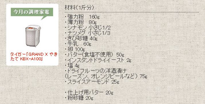 クリスマスを待つ間、毎日少しずつスライスして食べるドイツの伝統菓子シュトーレン。この時期にぴったりですが、手作りするには少しハードルの高いお菓子です。そこで今回は、ホームベーカリーで手軽に作れる“シュトーレン風”スイーツパンのレシピをご紹介します。タイガー「GRAND X やきたて KBX-A100」は「DCモーター」を搭載し、きめ細かい生地をこねあげることができるのが特徴。具材も100gまで自動投入できますので、生地にドライフルーツをたっぷり練り込めます。クリスマスシーズンのティータイムや朝食にいかがですか?