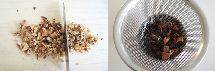 (6)干しイチジクも刻み、レーズンと一緒にぬるま湯でさっと洗って水気を切っておきます。