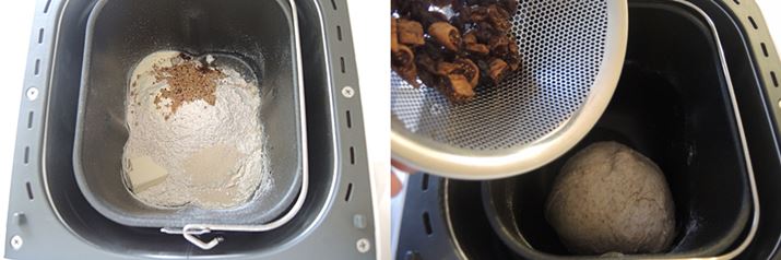 (8)具入れブザーが鳴ったら干しイチジクとレーズン、くるみを加えます。