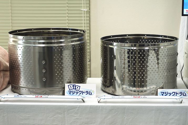 東芝ライフスタイルは、同社の人気ドラム式洗濯乾燥機「マジックドラム」の新モデル「Big マジックドラム TW-117X3」(TW117シリーズの最上位モデル)を発表した。新モデルの進化ポイントは、業界トップクラスの「大容量」化と「洗浄力の強化」、そして家事の“時短”に大きく貢献する「乾燥性能の強化」の3つ。発表会場では、新機能の説明のほかさまざまなデモンストレーションが行われたので、そのようすをレポートしよう。