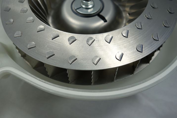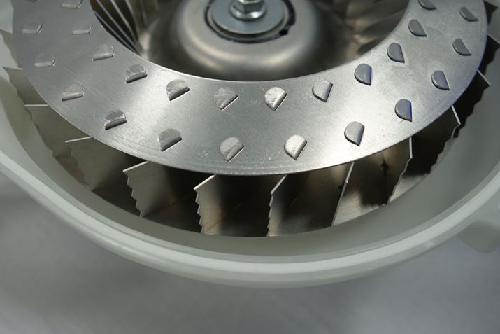 風を送るためのファンも大型化し、約30%ほど風量がアップ。写真上がTW-117X3、下が従来機のファン。TW-117X3の羽根は、大型化した分だけホイールから飛び出ている