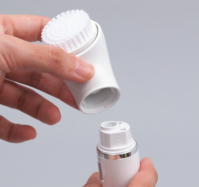 ヘッドの交換は脱毛ヘッドを上方向に引っ張って外し、クレンジングブラシをはめ込むだけ