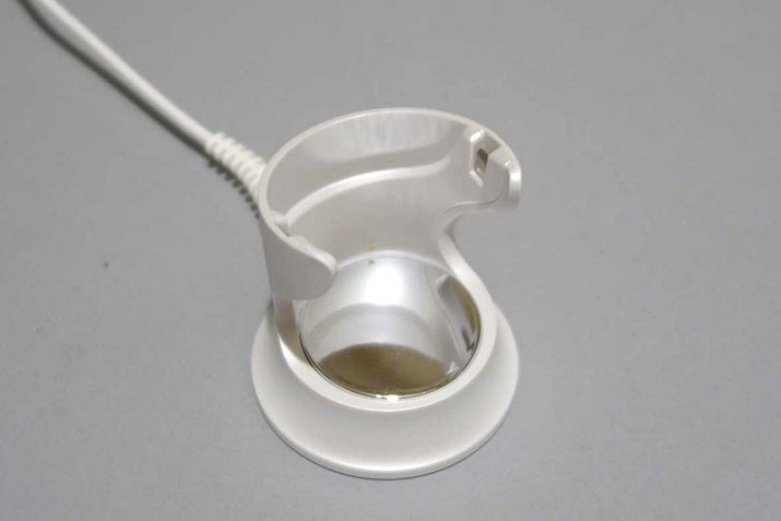 付属の充電台。本体をのせるだけで充電できるほか、充電中もブラシが露出するデザインなので、濡れたブラシを充電しながら乾かすこともできます