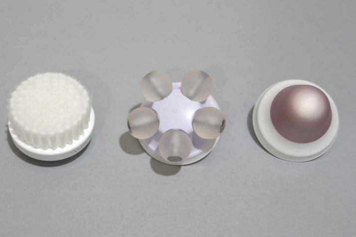 SC5320に付属するのは「ノーマル肌用」ブラシ(写真左)と、「タッピングヘッド」(写真中央)、そして別売りの「フレッシュアイヘッド」(写真右)の3つ。「ヘッド自動認識機能」を搭載しており、ヘッドを装着すると「ピッ」という電子音とともに最適な操作に切り替わります