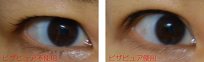 フレッシュアイ使用後の目周りを比較。右目にのみフレッシュアイを使用し、反転して並べてみましたが、使用していない目は奥二重で腫れぼったいのに、使用した目はまぶたがすっきりして二重の幅が大きく見ええます