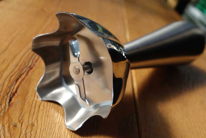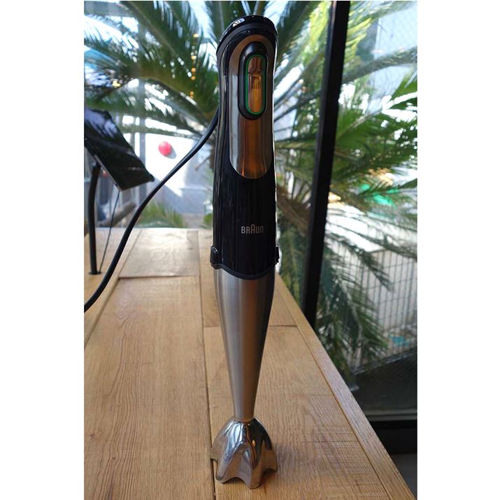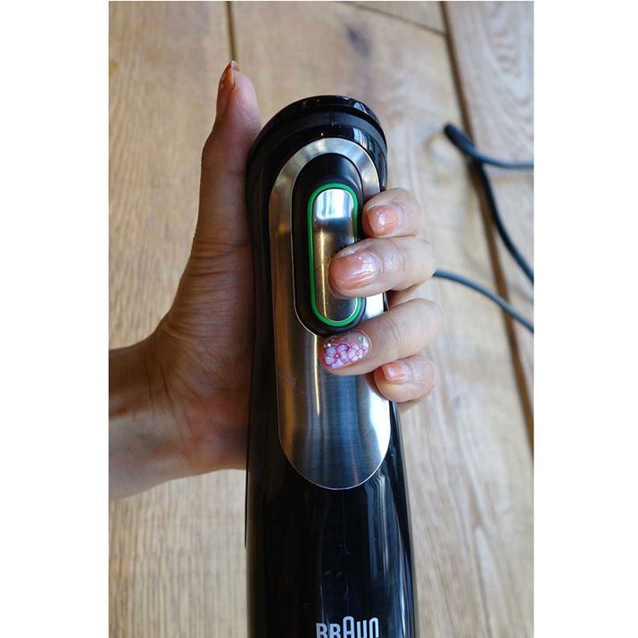 こちらが白身のメレンゲを作るのに使用した「マルチクイック」。手元のボタンを軽く握れば低速、ギュッと握ると高速で刃が回転