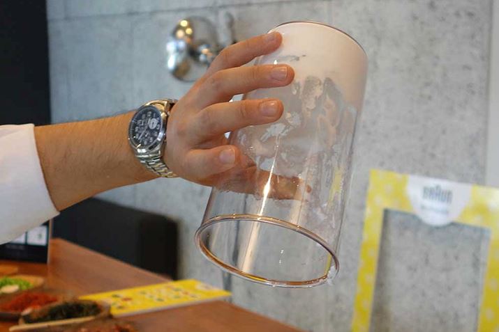水をいれたカップでマルチクイックを動作させると、刃の下にトルネードが! 「とにかくパワーがあるのが魅力!」だそう