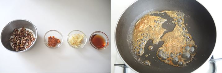 (8) 続いて、メイプルジンジャー味を作りましょう。しょうがは千切りにし、くるみはできれば炒って粗く切っておきます。