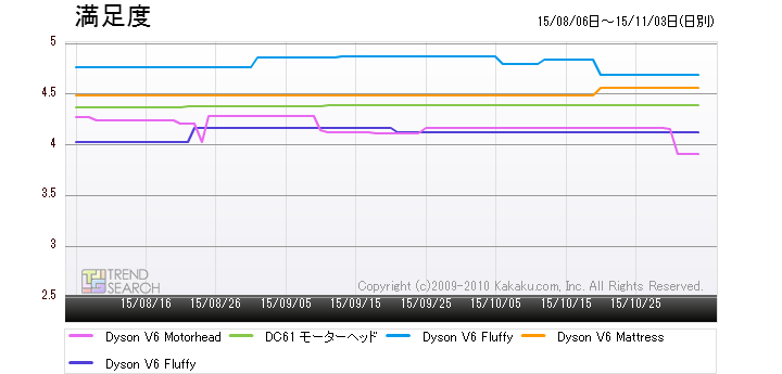 図6:ダイソンの人気製品5モデルの満足度推移(過去3か月)