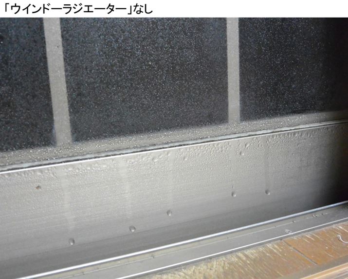 「ウインドーラジエーター」のある窓も上のほうはうっすらと曇っているが、結露は見当たらない