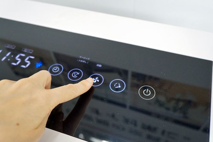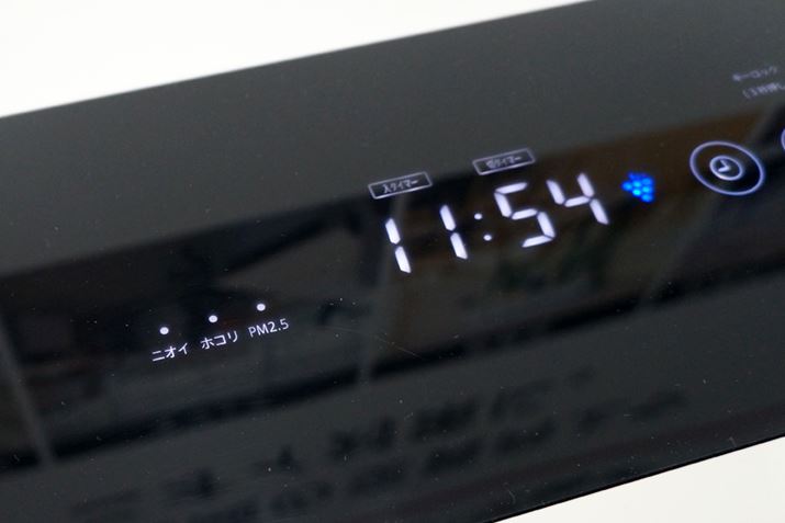 運転は「強」「中」「静音」「自動」が用意されている。「静音」の風量は3.2m³/分で、運転音が26dB。ささやき声が30dBということから、「静音」は夜間でも運転音が気にならないレベルと言えるだろう。ちなみに、操作部はタッチパネルとなっている