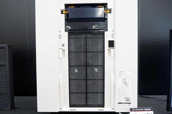 広い空間に対応する風量があっても、清浄力がともなっていなければ意味がない。上述のとおり、「FP-140EX」は2基のファンを搭載している。それにあわせて左右に0.3μmの粒子を99.97%以上集じんする静電HEPAフィルターを装備することで、米国家電製品協会が制定する集じん性能基準「CADR」においてタバコの煙、ホコリ、花粉の除去が最高値を獲得。さらに、プラズマクラスター25000を放出してフィルターでは取れない付着臭の除去や、カビ菌の増殖を抑制する。