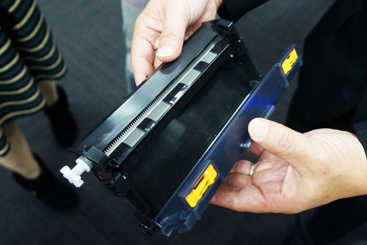 空気清浄機のフィルター自動お掃除というと日立「クリエア EP-LVG110」があるが、「FP-140EX」の手法はまったく異なる。「クリエア EP-LVG110」は掃除をするためのユニットが可動するのに対し、「FP-140EX」はフィルターを上下に動かして付着したホコリを取り除く。これは文章ではわかりづらいので、以下の写真とともに解説しよう。