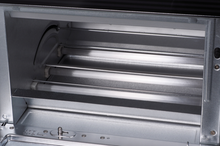 庫内上に2本、下に3本の直火ヒーターを搭載。庫内サイズは27(幅)×29.5(奥行き)×8.5(高さ)cm