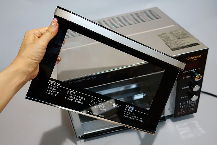 また、油飛び散り防止カバーを使用すれば、庫内の汚れも最小限に防ぐことが可能。さらに、筆者が特に気に入ったのは、オーブン前面の扉が外せる点。意外にガラス部分の汚れは目立つものだが、扉を外して水洗いできるので、長期間使用してもキレイなまま使用できる。これらのメンテナンス性の高さもET-YA30の魅力だと思った。