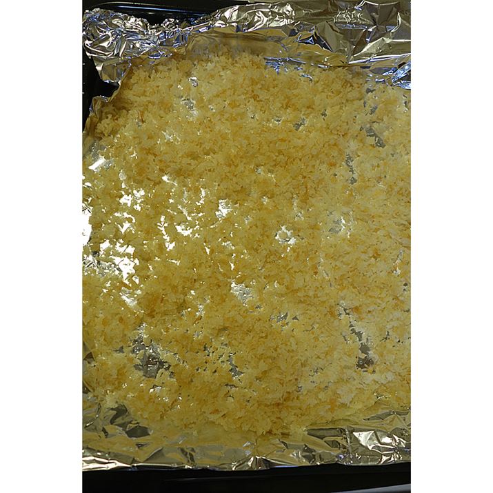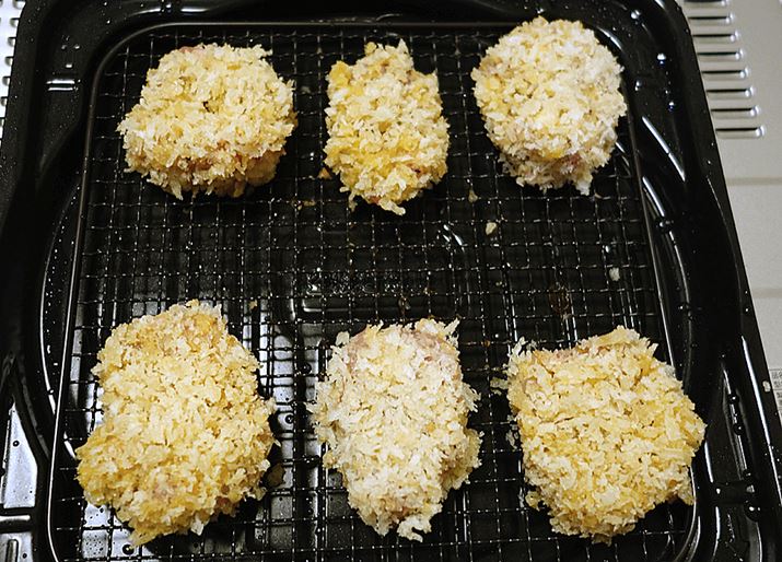 フライ調理は、最初にパン粉をグリルして軽く焼き色を付ける必要がある。少々面倒なので、我が家では一度に大量に作って冷凍保存