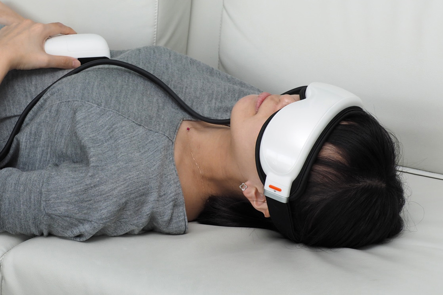 こめかみと眉間、まぶたに当たる部分に入ったエアバッグが膨らんだりしぼんだりを繰り返すことで、“ぐぐーっ”と指圧されているような圧力を与えてくれる。頭痛持ちで、こめかみや眉間をぐりぐりやってしまうという人には最適だ。