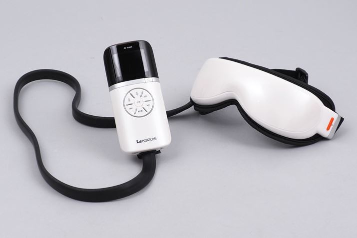 最近、目の疲れのせいか頭がすっきりせず、仕事中もこめかみや眉間をぐりぐりと揉むのがクセになってしまった。そんな状況を解決したいと目を付けたのが、コイズミ「エアーマスク KRX-4000」(以下、エアーマスク)だ。目元に装着して使用するケア機器で、エアの圧力と温感ヒーター、振動で目のまわりやこめかみの疲れをリフレッシュさせてくれるという。さっそく使ってみた。