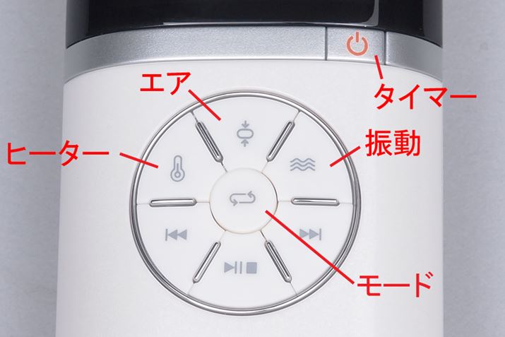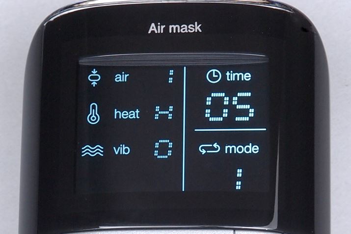 「エアーマスク」に搭載されている目元ケアの機能はエアの圧力による「締め付け」、ヒーターによる「温め」、バイブレーションによる「振動」の3つだ。運転モードは3つの機能の複合モード、「締め付け」「温め」「振動」の中から2つを組み合わせたモード、それぞれの機能の単独モードという計7種類が用意されている。モード内で「締め付け」が4パターン、「温め」の温度が高/低の2段階、「振動」が8パターンで選択可能。ケアの時間は5、10、15分から設定することができる。