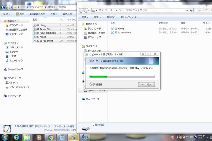 付属のUSBケーブルでパソコンに「エアーマスク」をつなぐと、「リムーバルディスク」として認識される。そこに用意しておいたMP3 ファイルをコピーするだけでOK