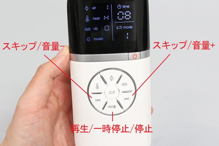 コントローラーにイヤホンを装着するとディスプレイに「music」と表示され、下半分のボタンが操作できるようになる