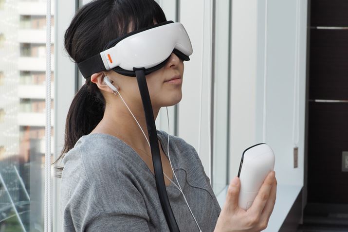 マスクが触れている部分全体に、脳にまで響くようなパワフルな振動刺激が伝わる。強めのマッサージが好きな筆者でも「もう少しマイルドでもいいかも」とさえ思ったほどだ。1分ほどで十分目元の疲れがほぐれた気がした。