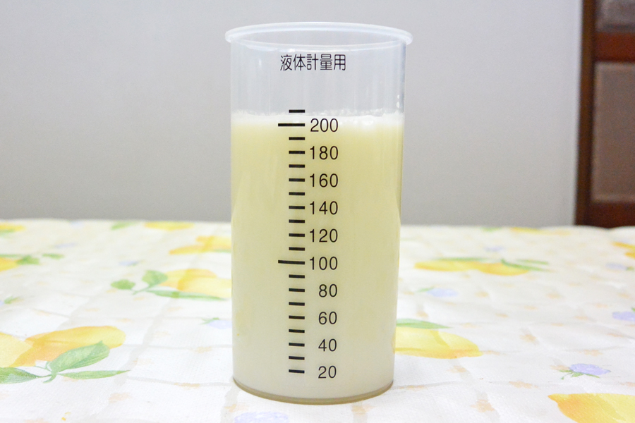 200mlの生クリームでバターを作ると、バターミルクは約200mlできた