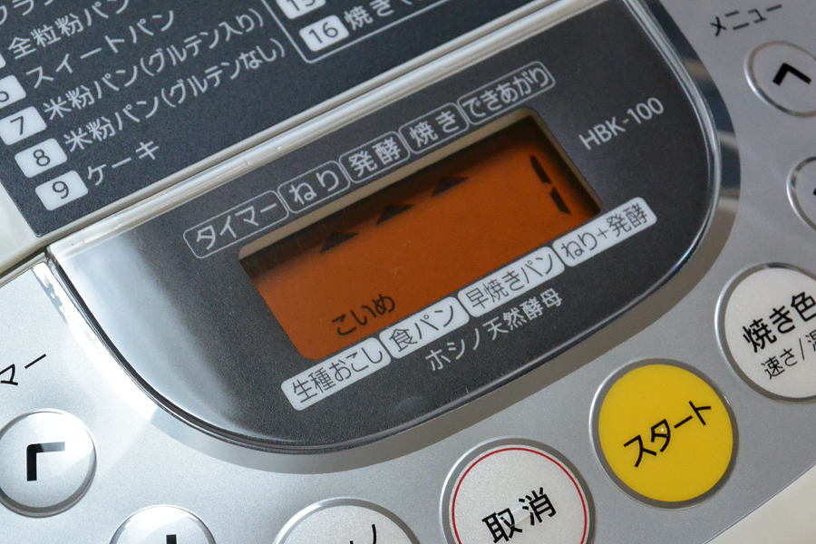 普通の食パンと同じ「ねり」「発酵」「焼き」となるので、食パンのメニュー番号「1」でスタート