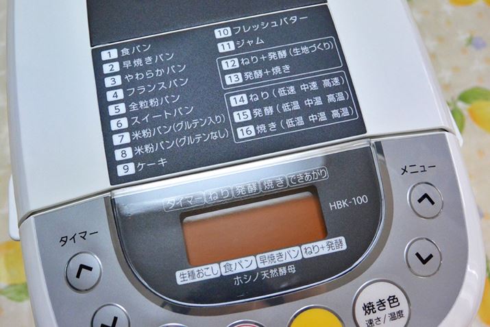 普通の食パンと同じ「ねり」「発酵」「焼き」となるので、食パンのメニュー番号「1」でスタート