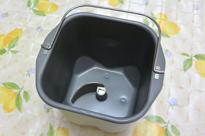 パン作りに使用するパンケースに羽根をセット。羽根は1種類しか付属しないので、バター作りでもパン作りでも同じものを使う