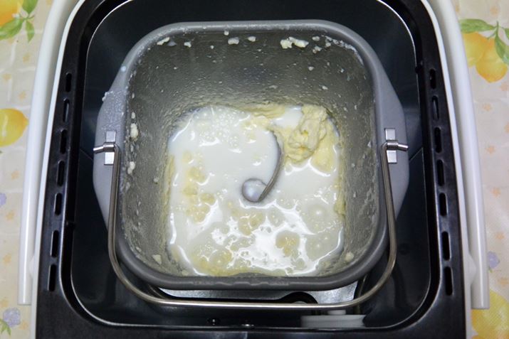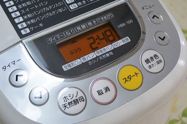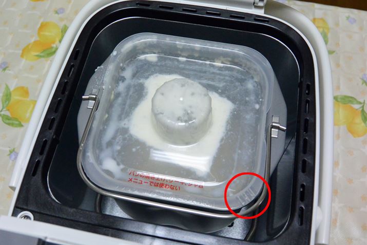 材料を攪拌して生地をねる途中で、混ぜ込みたい具材を入れる。運転開始から約1時間後にブザーが鳴るので、そのタイミングで投入