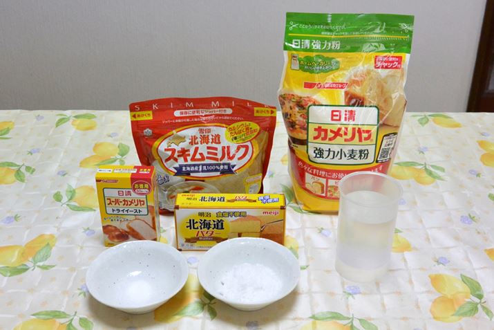 普通の食パン作りには、強力粉、砂糖、塩、バター、スキムミルク、水、ドライイーストを材料として使用する。バターミルクを使うならスキムミルクやバター、水は不要なのでは? と想像していたのだが、分量の違いはあれど材料はすべて必要