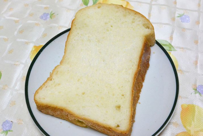 天面の焼き色がバターミルク食パンに比べると薄いような気もするが、窯伸びの具合は十分なので発酵不足はないようだ。ふんわりと柔らかく、もっちり感も適度にあって口どけもいい