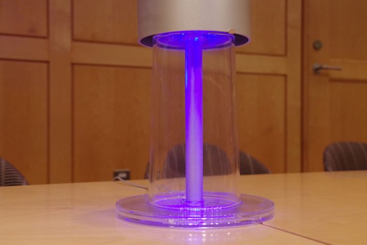 では、集塵コレクターより下の部分はどういう役割なの? と疑問が残る。実は、清浄に関する働きは一切ない。内部に搭載されたLEDライトで発光する、インテリア性を高めるためのデザインだ