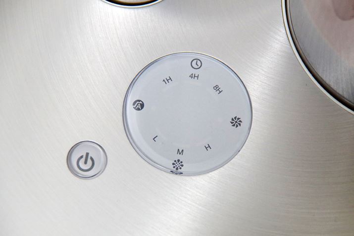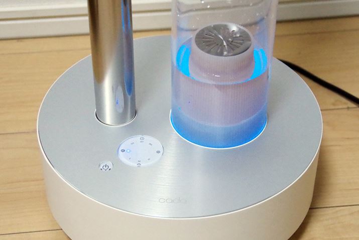 室内の湿度は、給水タンク下のライトでも知ることができる。十分な湿度が保たれている時はブルーだが、やや乾燥しているとグリーン、湿度不足となるとイエローに光の色が変化していく。また、照度センサーが搭載されているため、就寝時などで部屋が暗くなると自動で輝度が落ちる