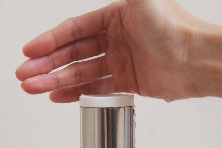 床やソファーに座った状態だとミストの噴出は、頭より上となる。高い位置に吹出口を設けているのは気流にのせてより遠くまで届ける工夫だというが、加湿器に近い位置で過ごすわけではないので実感はできず。しかし、原理的には納得できるので、ミストの拡散には優位な構造だと言えそうだ