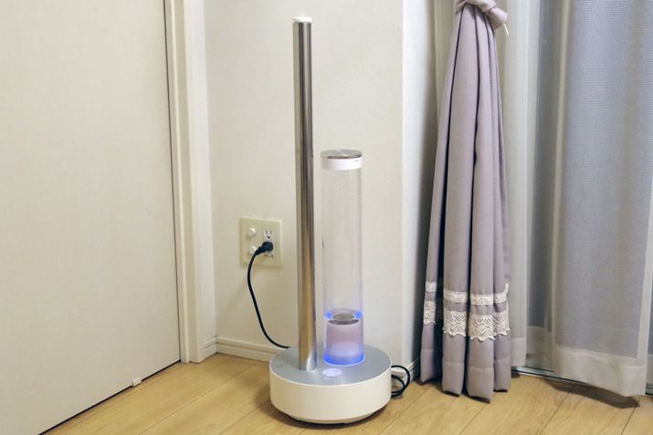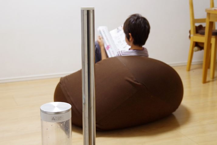 サイズは直径270×高さ855mm(適用床面積〜17畳)で、比較的省スペース。縦長の構造にすることで、高い位置からミストを放出できるようにしているという