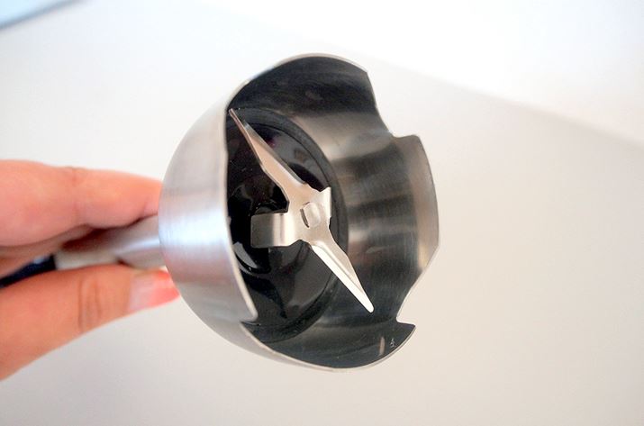 この厳重な安全装置、最初はちょっと面倒くさいなと思いました。何しろ、ブレンダーを握った親指でスイッチを下げながら押し、押している間だけ回転するのですが、これが、なかなか押しにくい角度なのです。慣れるまでは、親指の付け根がつりそうでしたが、この安全装置がいかに重要かは後々、実際に使ってみて実感することになりました。