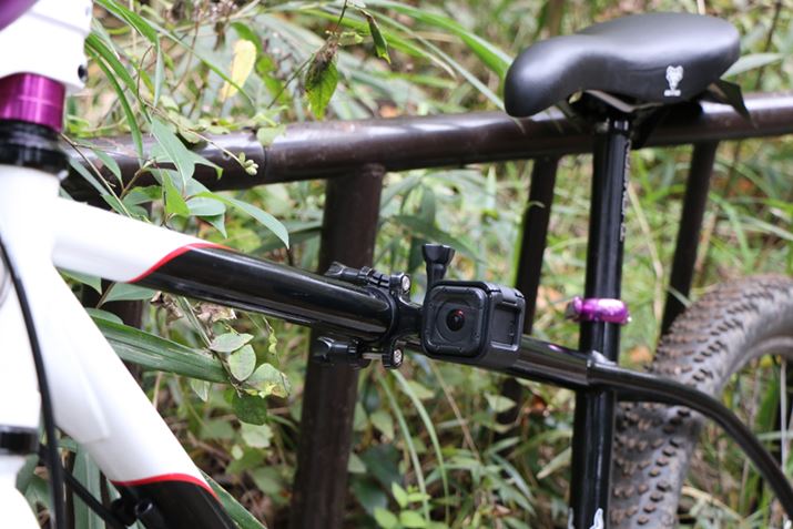 これまでのGoProだとペダリング中に膝が当たってしまうが、HERO4 Sessionならトップチューブに付けても問題なし! いろいろな所に装着して撮影が楽しめる