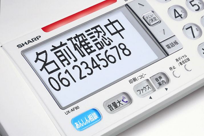 「fappy UX-AF91CL」は、業界で初めて“怪しい電話”を自動で見極めて着信拒否するという「迷惑電話フィルタ」を搭載する、振り込め詐欺対策に特化したFAX電話器。「迷惑電話フィルタ」の仕組みは、かかってきた電話の番号を、専門提携業者が提供する迷惑電話の電話番号から自動判別し、迷惑電話だと判別された着信の拒否をするというもの。このデータは警察や自治体などに提供された迷惑電話番号の情報をもとに作成されたデータベースで、データは電話回線を通じて毎日更新されるため、常に最新の状態を保つことができるそうです。