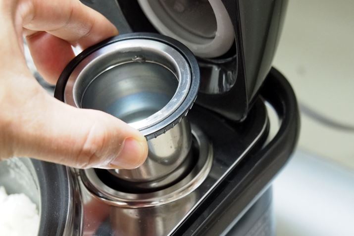 内ぶたにある3つの穴から、スチームが高速で噴射される